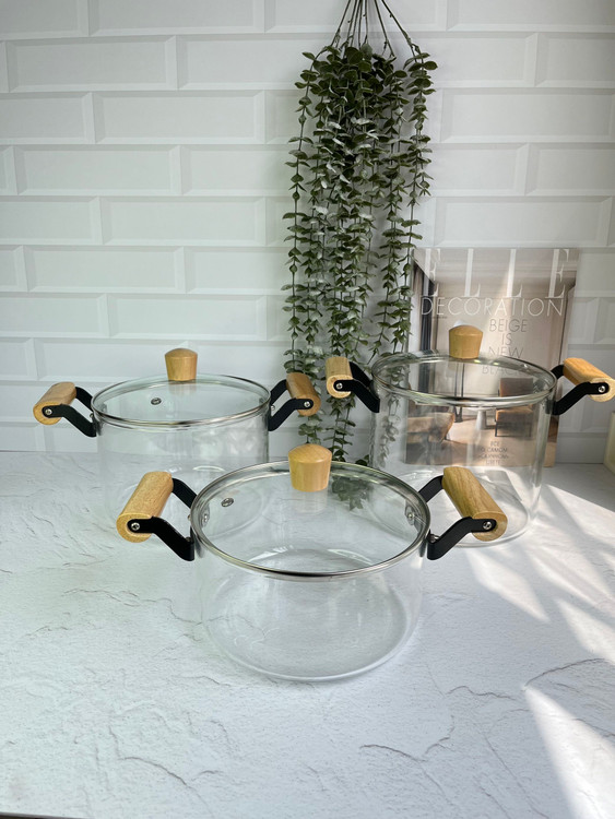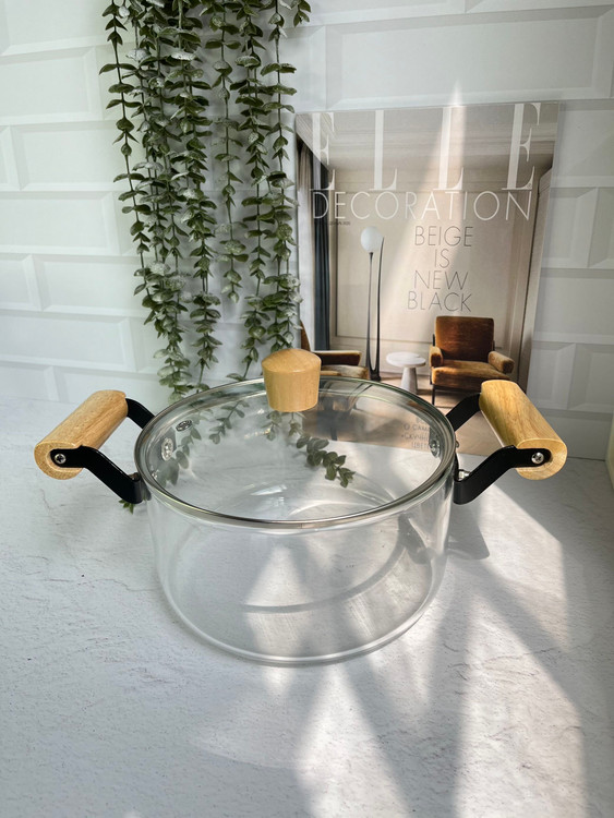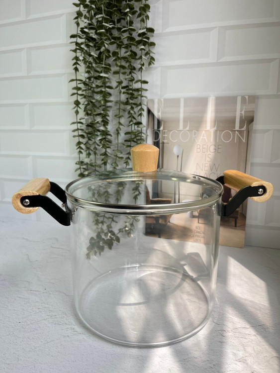 قابلمه پیرکس دسته بامبو/شعله مستقیم