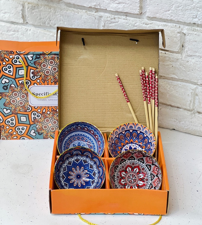 شامل 4 عدد کاسه و 4 جفت چاپ استیک